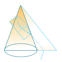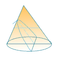 Pictured Above: The parabola, hyperbola, and the ellipse, all created within the cone. On each figure, the upright is the line sticking out from the top of the section, and the transverse is the line down the middle of each.