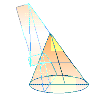 In this next cluster of propositions, Apollonius reveals that, by using cutting planes at specific angles and locations within the cone, one can not only create triangles and circles, but one can create sections with figures entirely unique to the cone. These shapes are the parabola (I.11), the hyperbola (I.12), and the ellipse (I.13). Additionally, he also constructs a figure on "vertically opposite surfaces," (I.14) which are simply two hyperbolae on two opposite cones. These propsitions also use the transverse diameter and upright side for the first time (as defined in Part I and seen on the diagrams below).